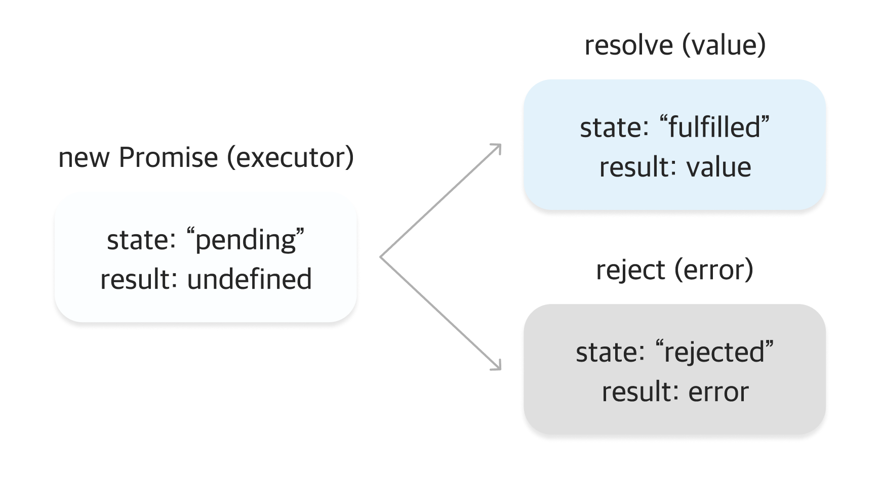 reject : 만약 요청이 실패한다면, 에러 객체를 나타내는 error와 함께 호출한다. 그 뒤의 내용은 실행하지 않고 코드를 종료한다.