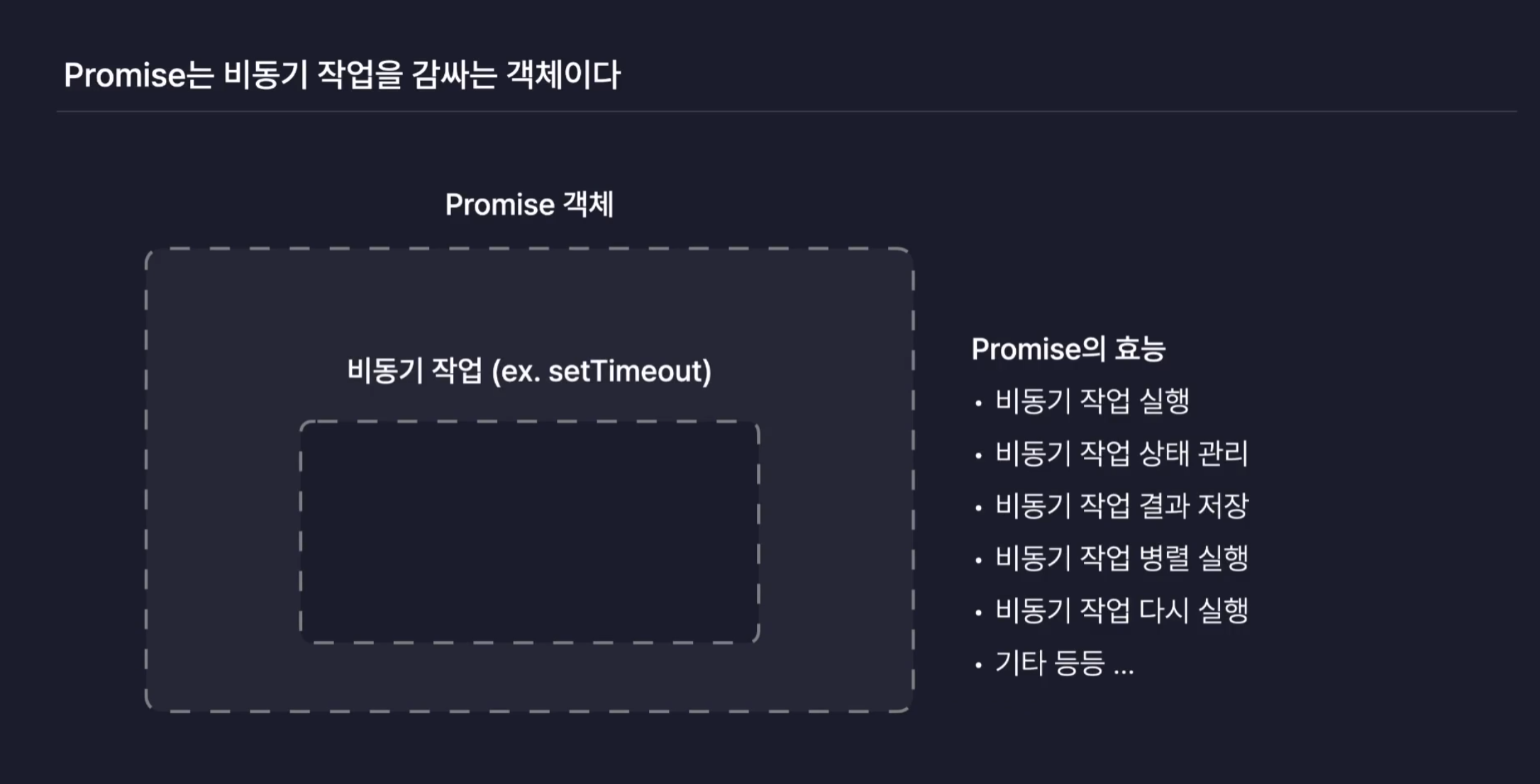 | 예시 | fetch().then(...), await | setTimeout, I/O, fetch |