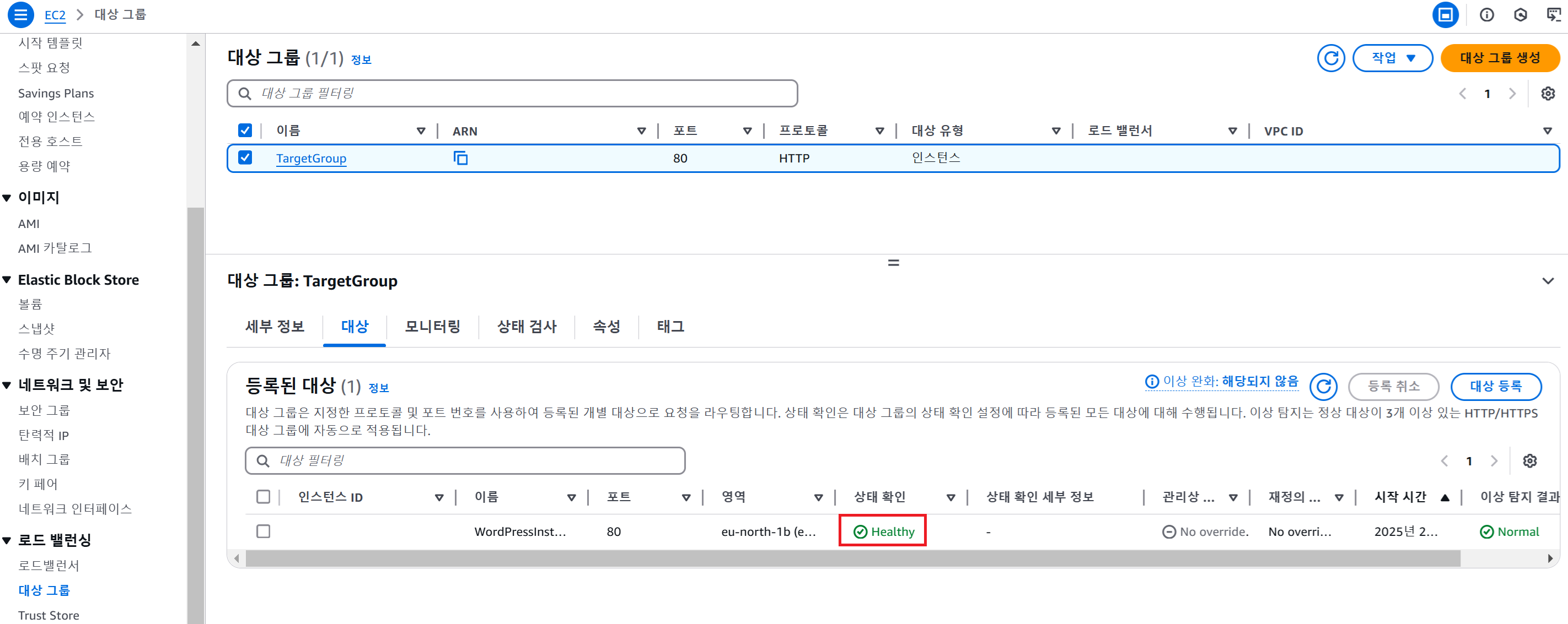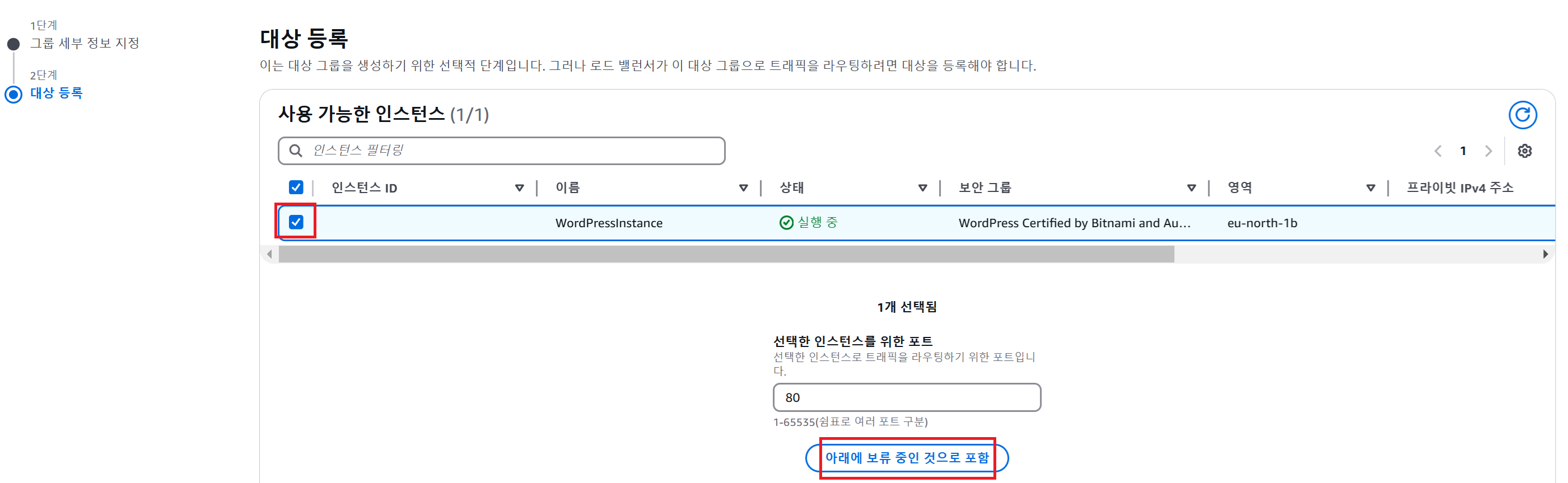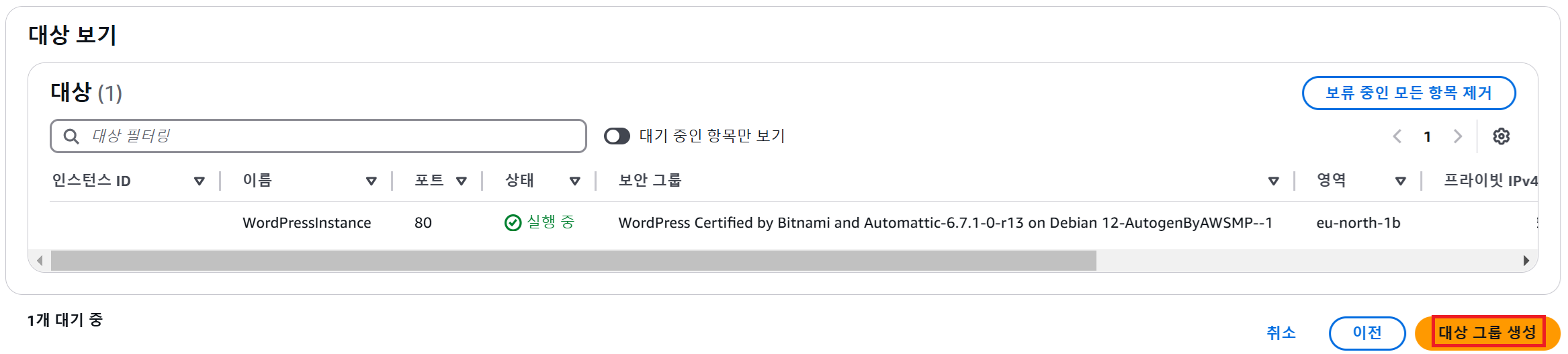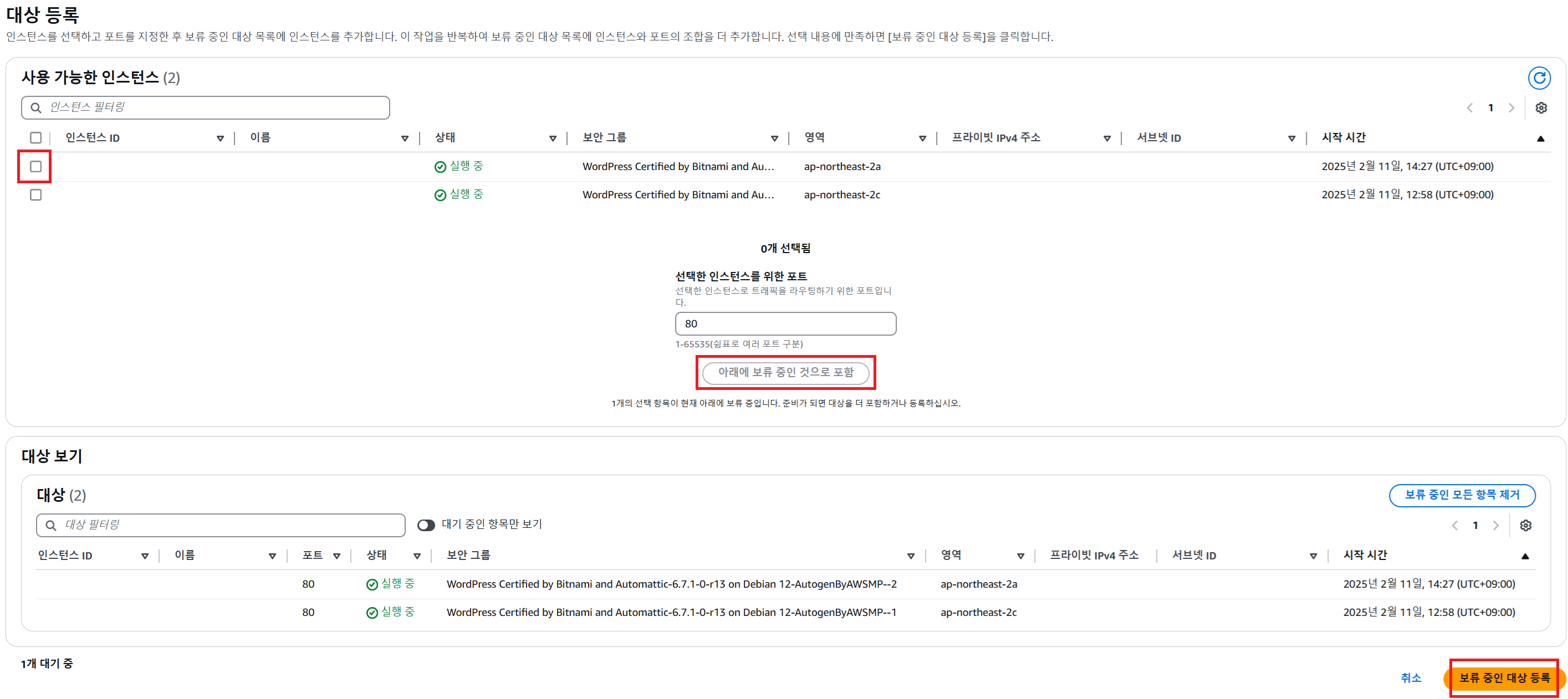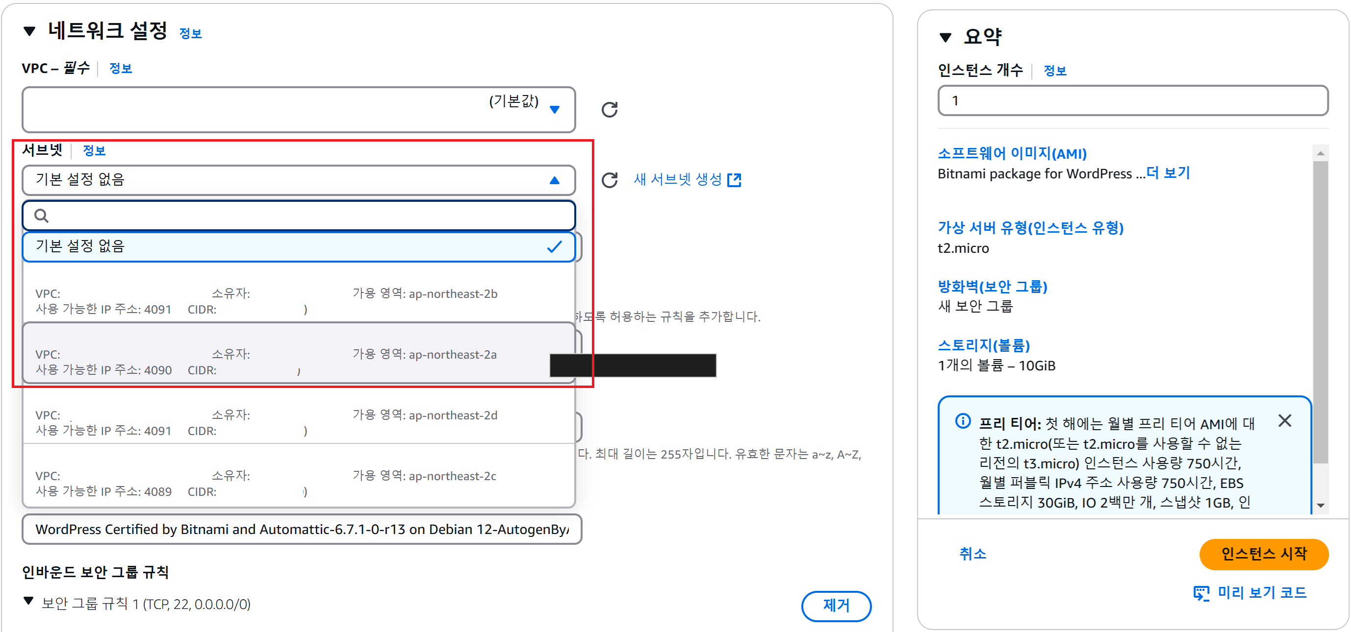 WordPress 인스턴스가 있는 가용 영역을 반드시 포함하기