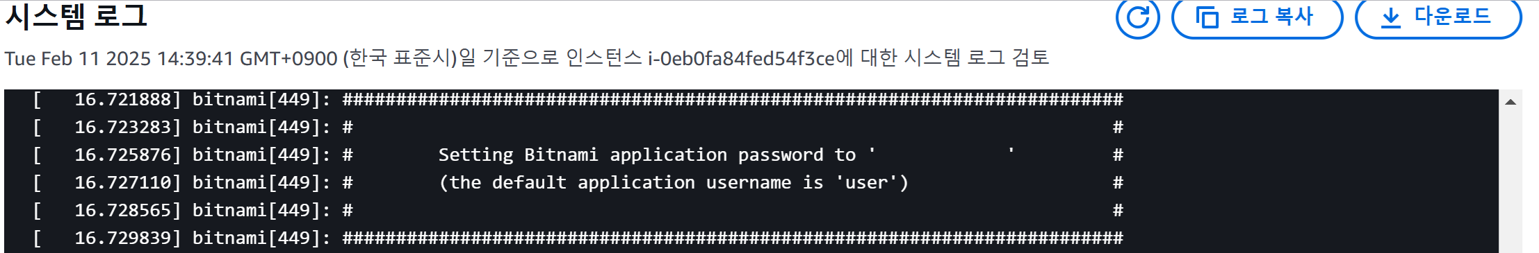 아이디 user, 비밀번호 시스템 로그에서 확인