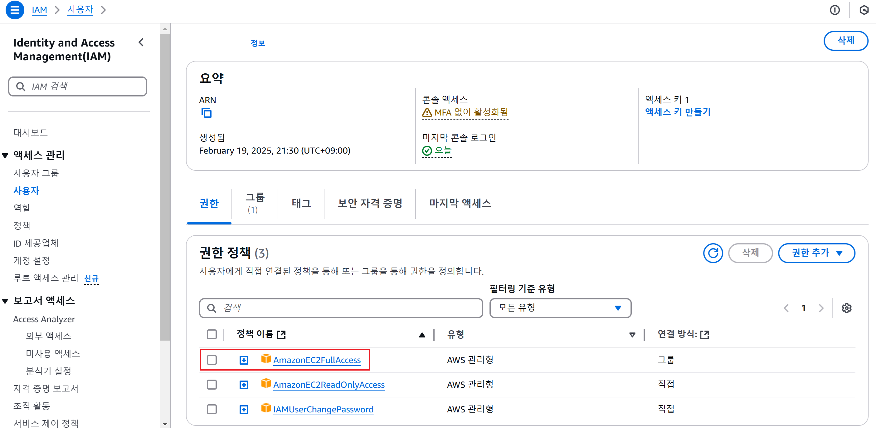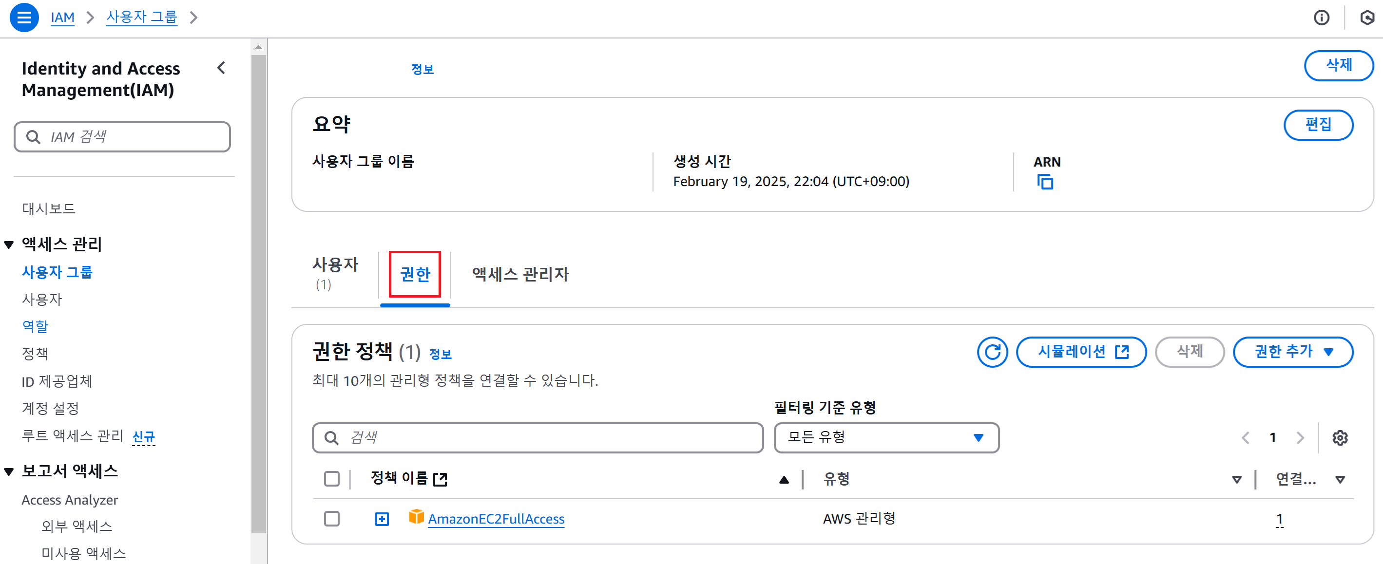 3️⃣ IAM 그룹을 생성하여 그룹에 속한 사용자에게 특정 권한을 부여할 수 있다.