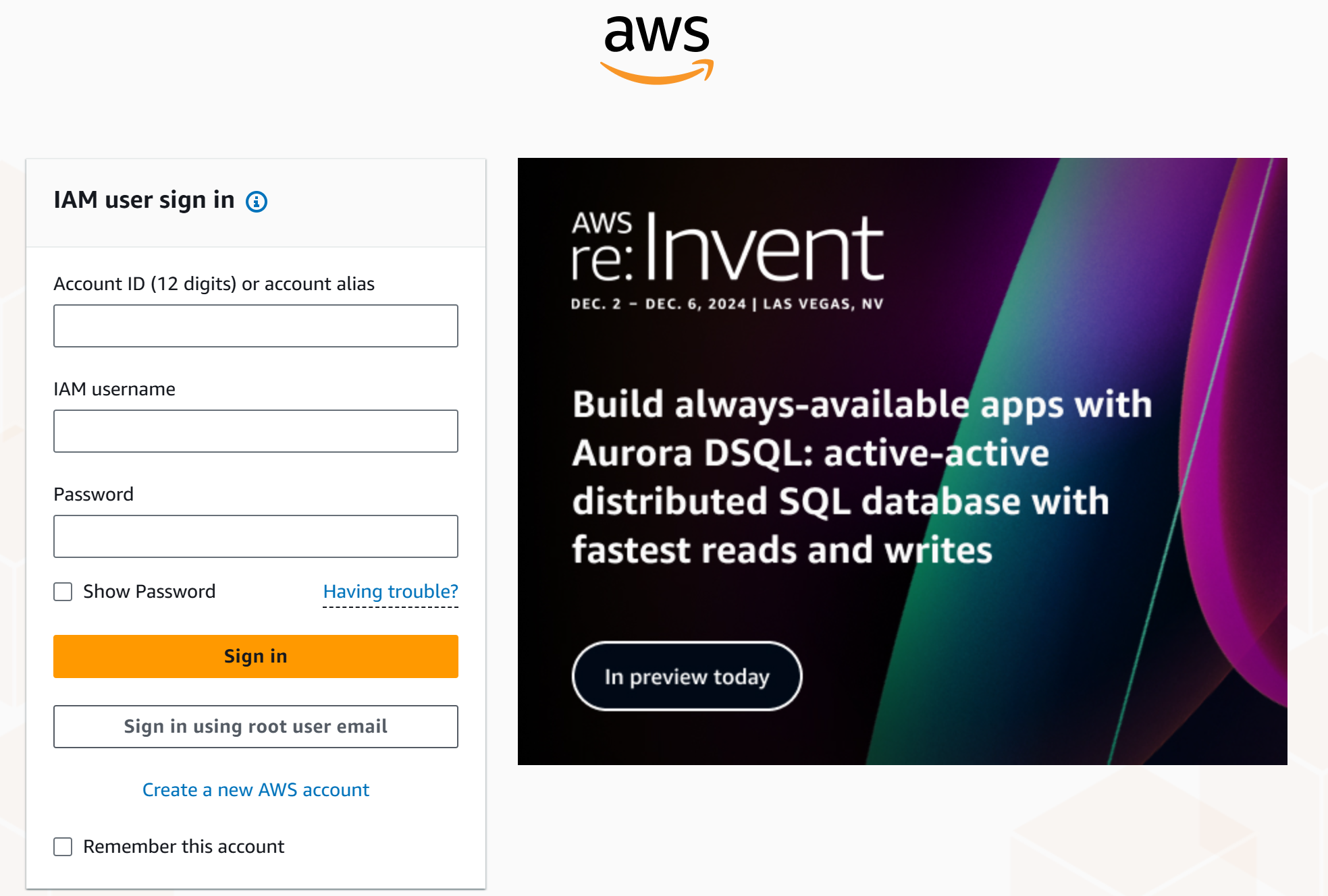 AWS Management Console Access : 브라우저를 통해 전용 Console login link로 접속하는 방식