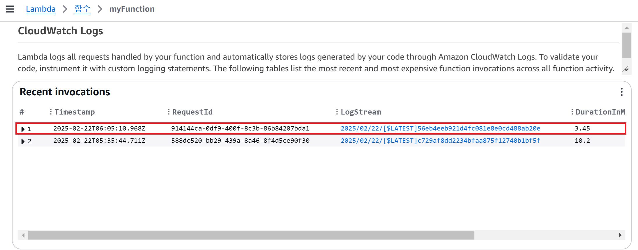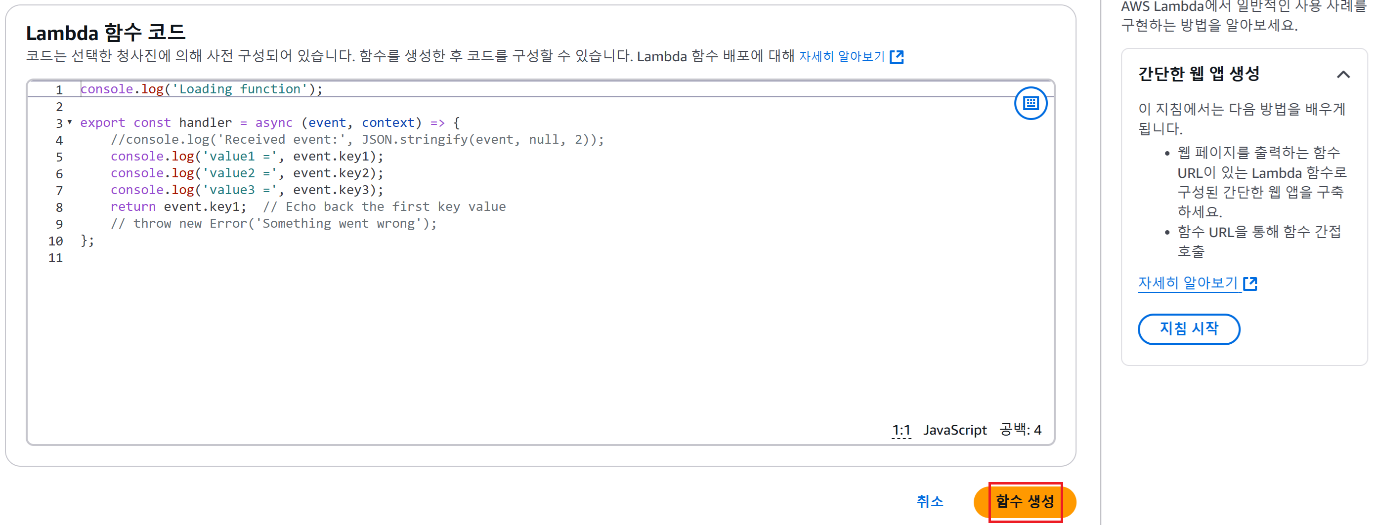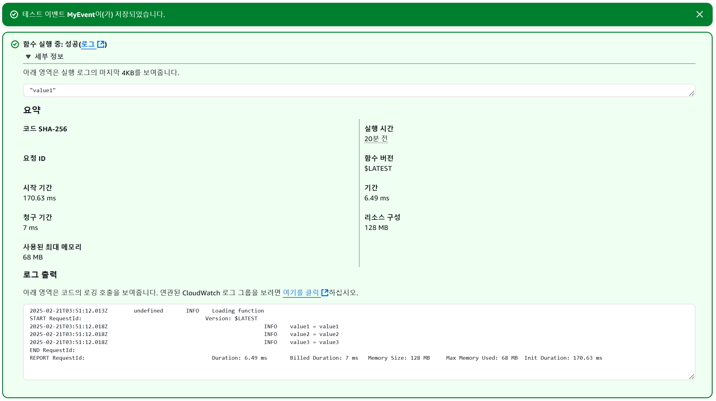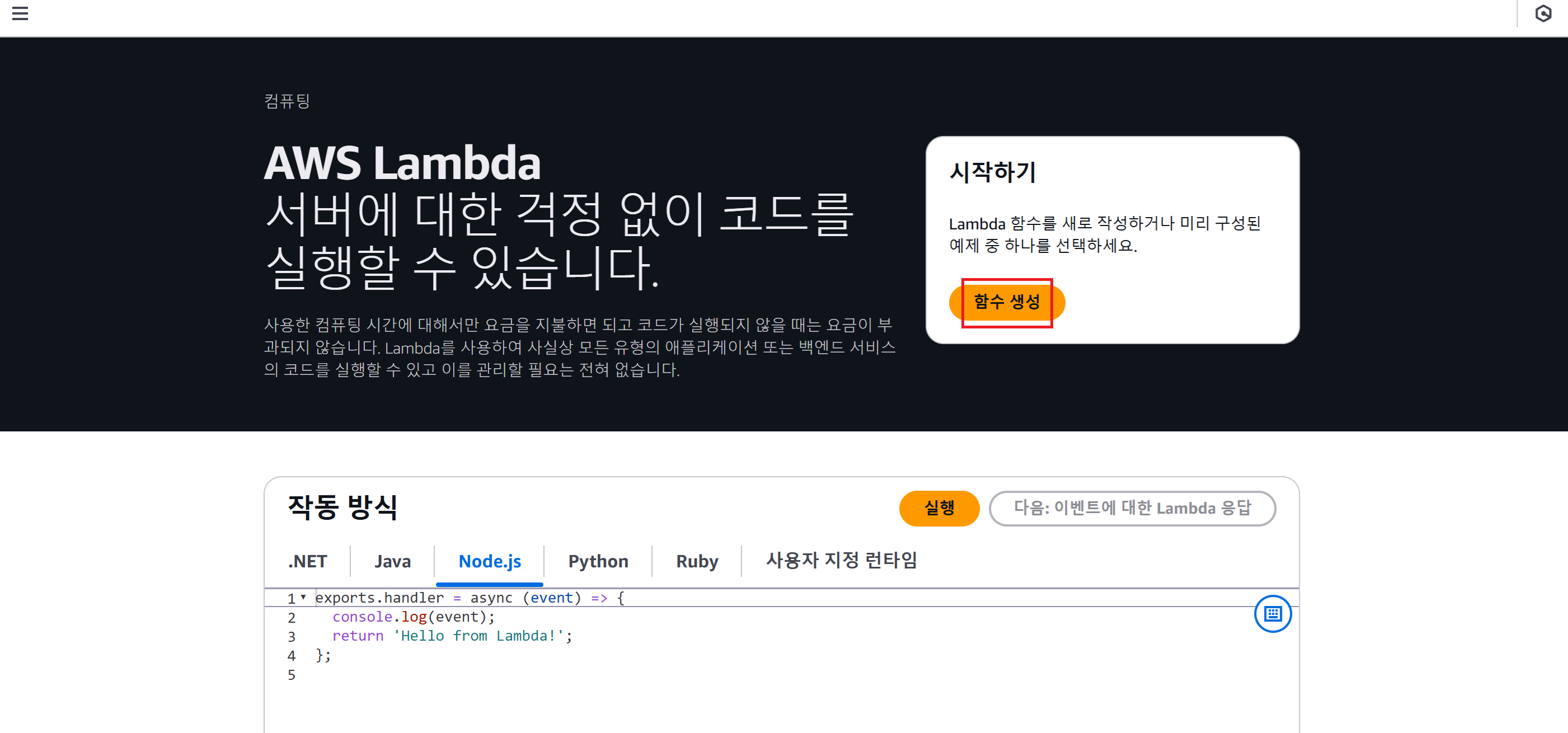 Lambda 함수 실행하기