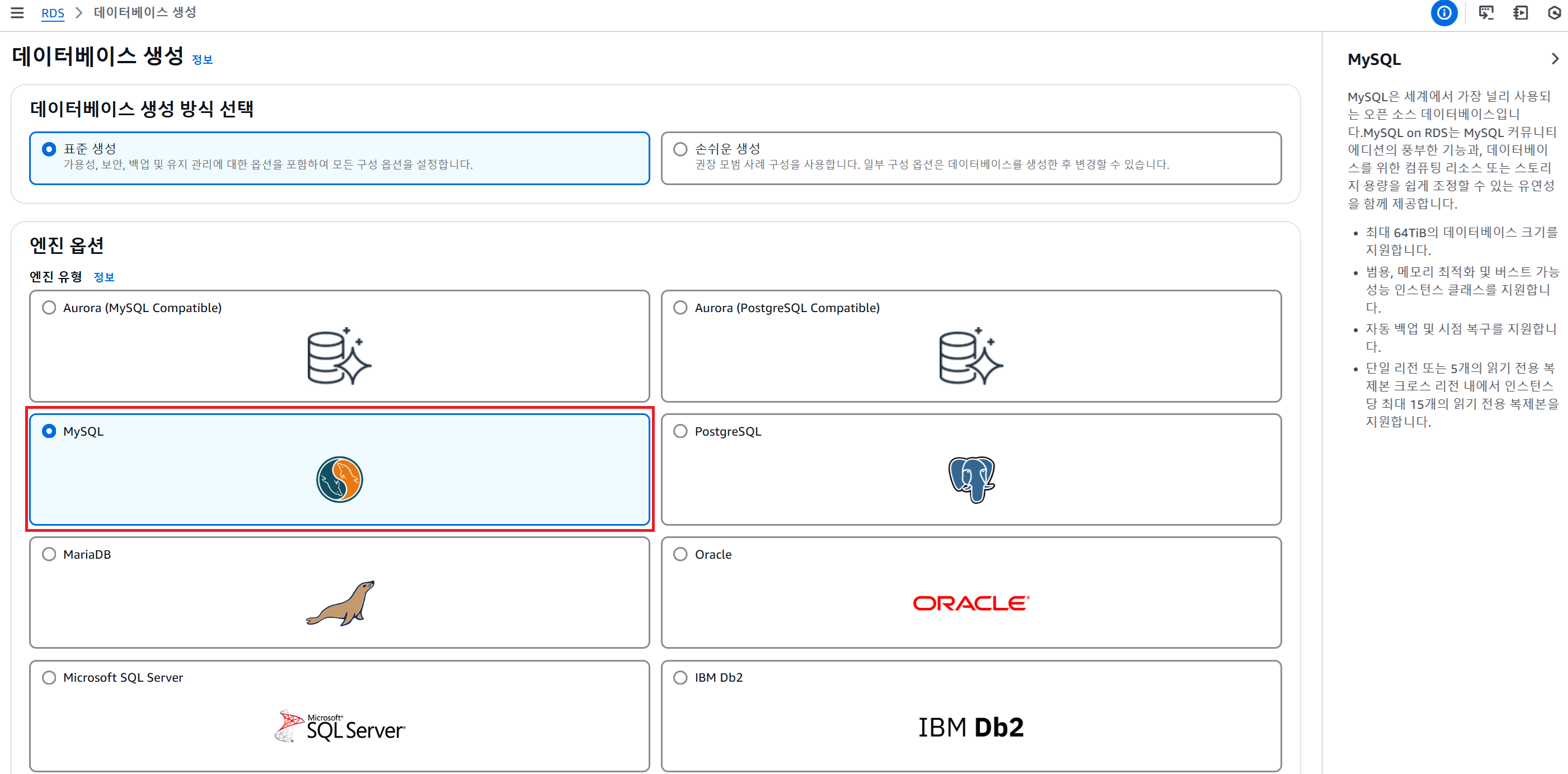 ORACLE, MySQL, PostgreSQL, MariaDB, Aurora 등 다양한 DB엔진 제공