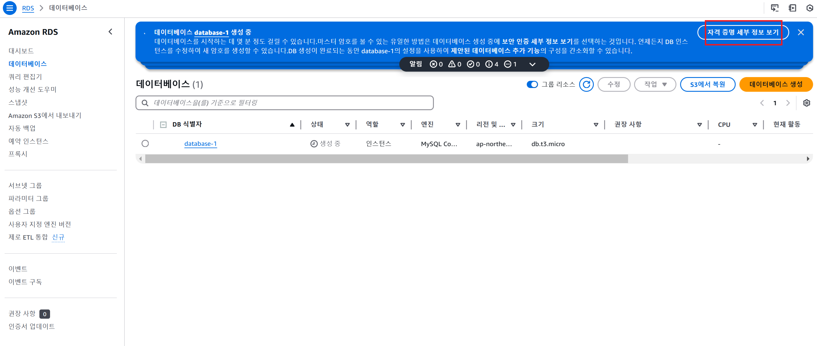 RDS 인스턴스 생성하기 (Master DB 생성하기)
