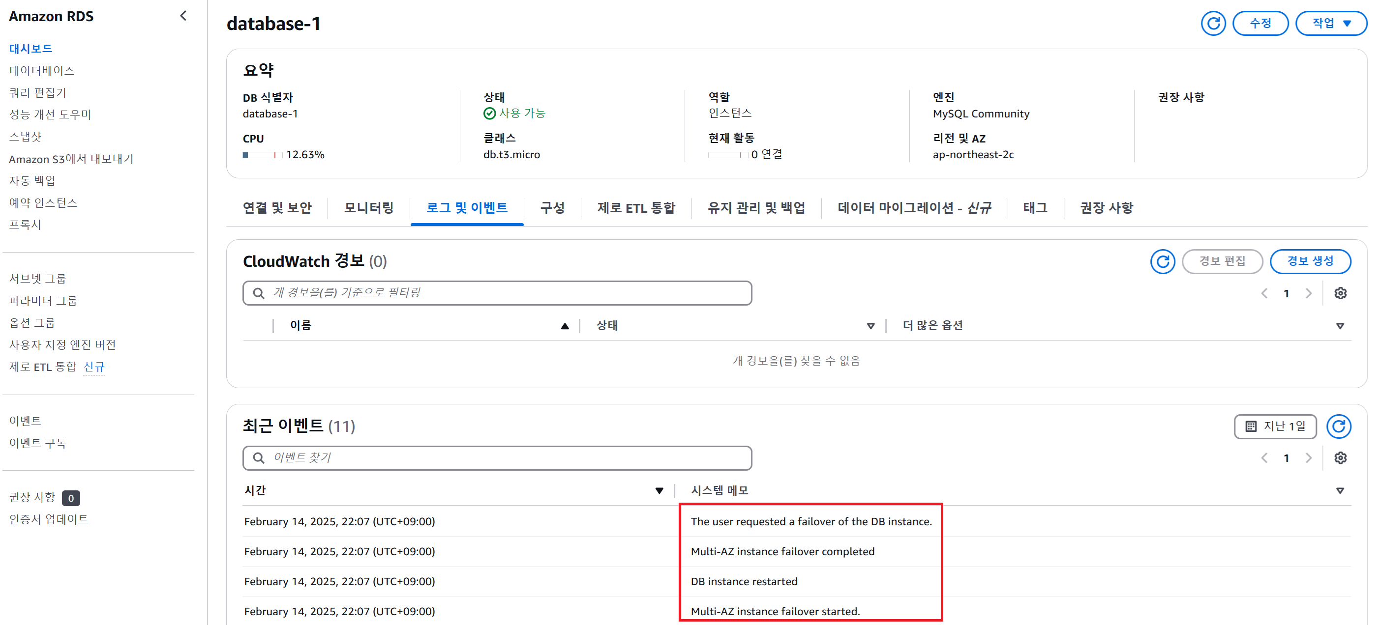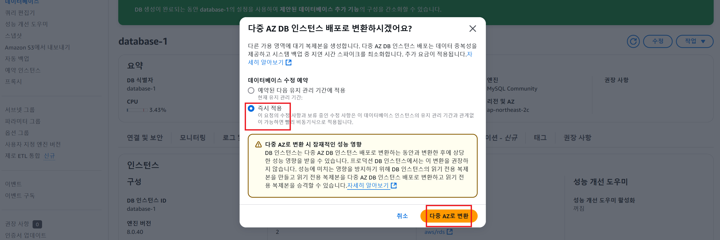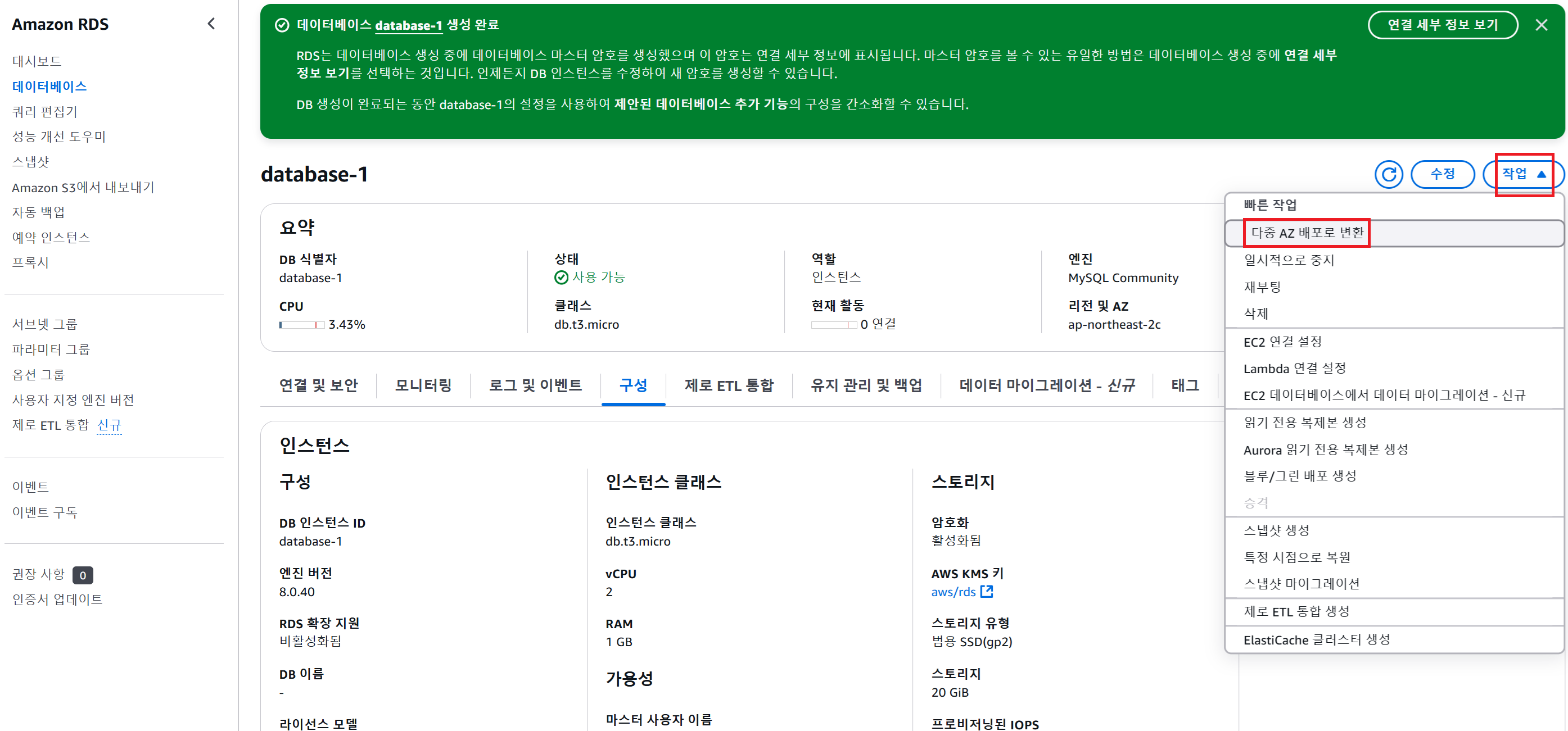 DB 인스턴스를 다중 AZ 배포로 전환하기 (Standby DB 생성하기)