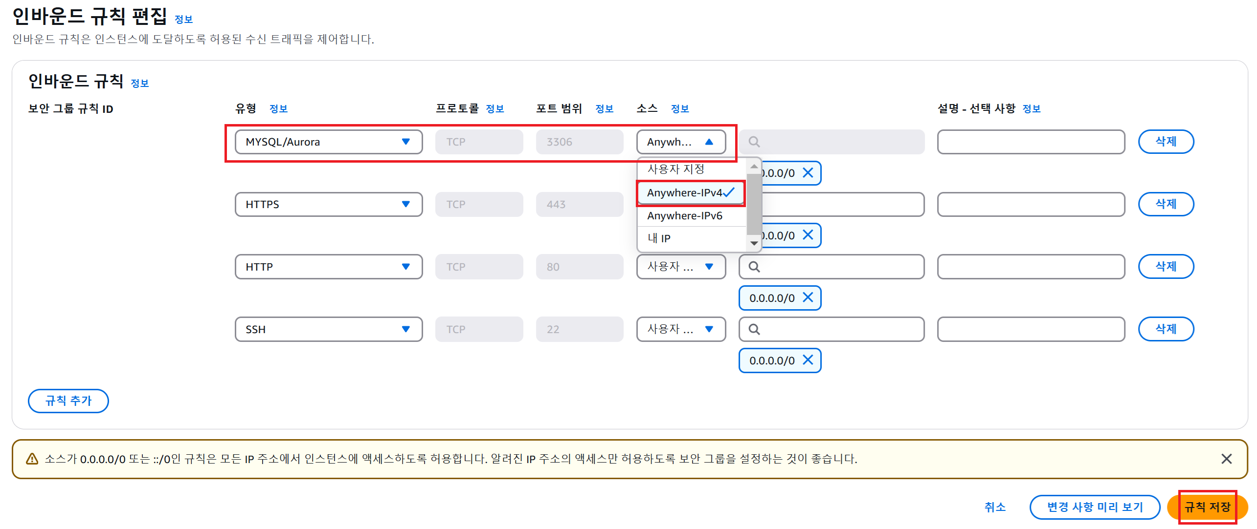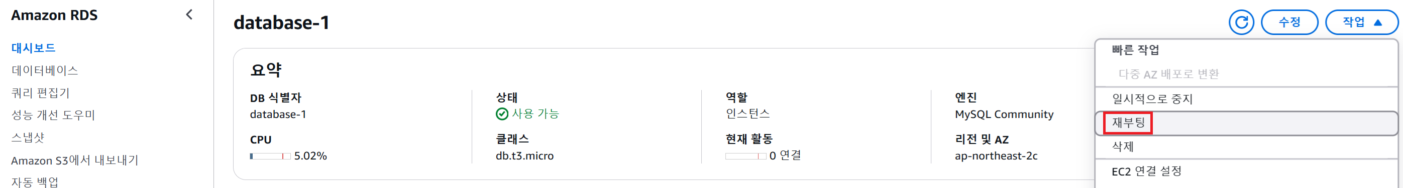 기존 실행 중이던 EC2 인스턴스들은 자체 DB를 사용하므로 종료
