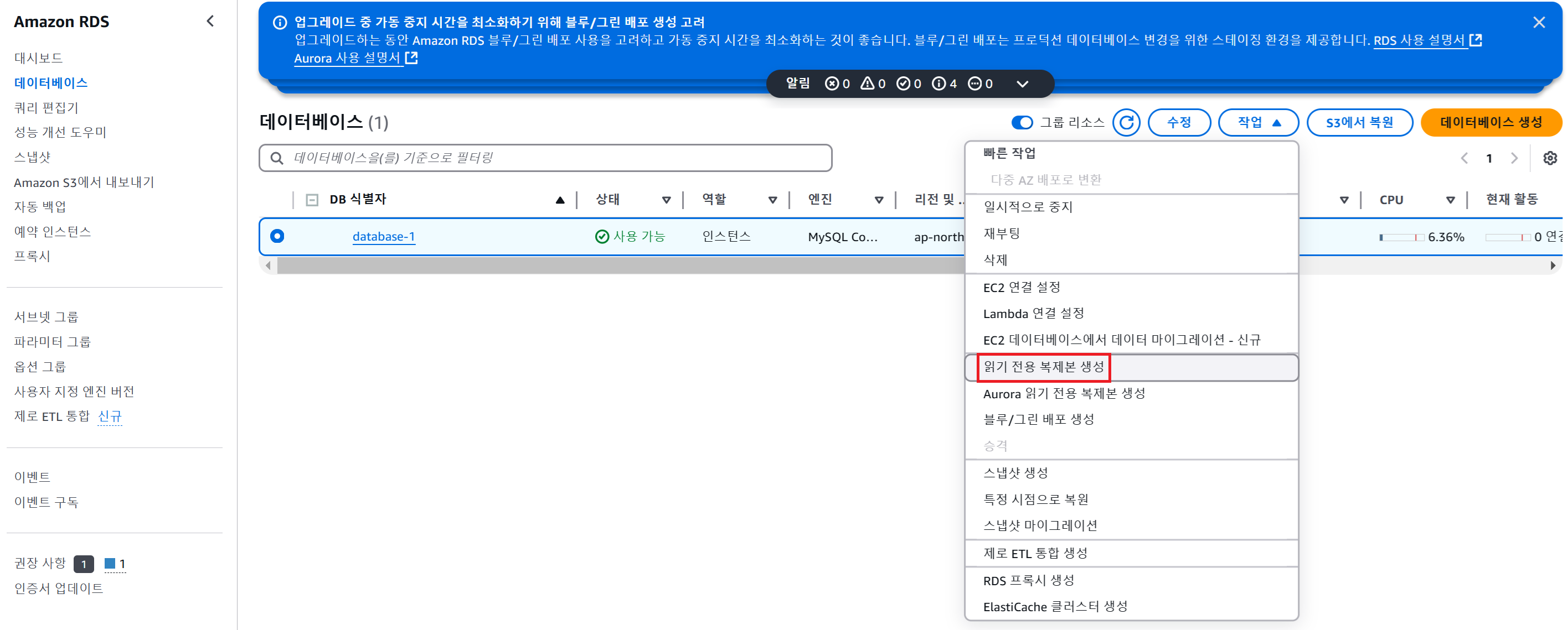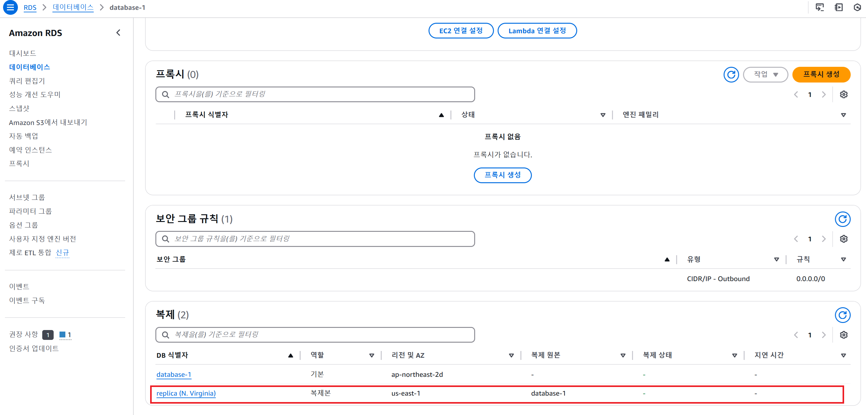 Read Replica 생성하기 (다른 리전에 읽기 전용 복제본 생성하기)