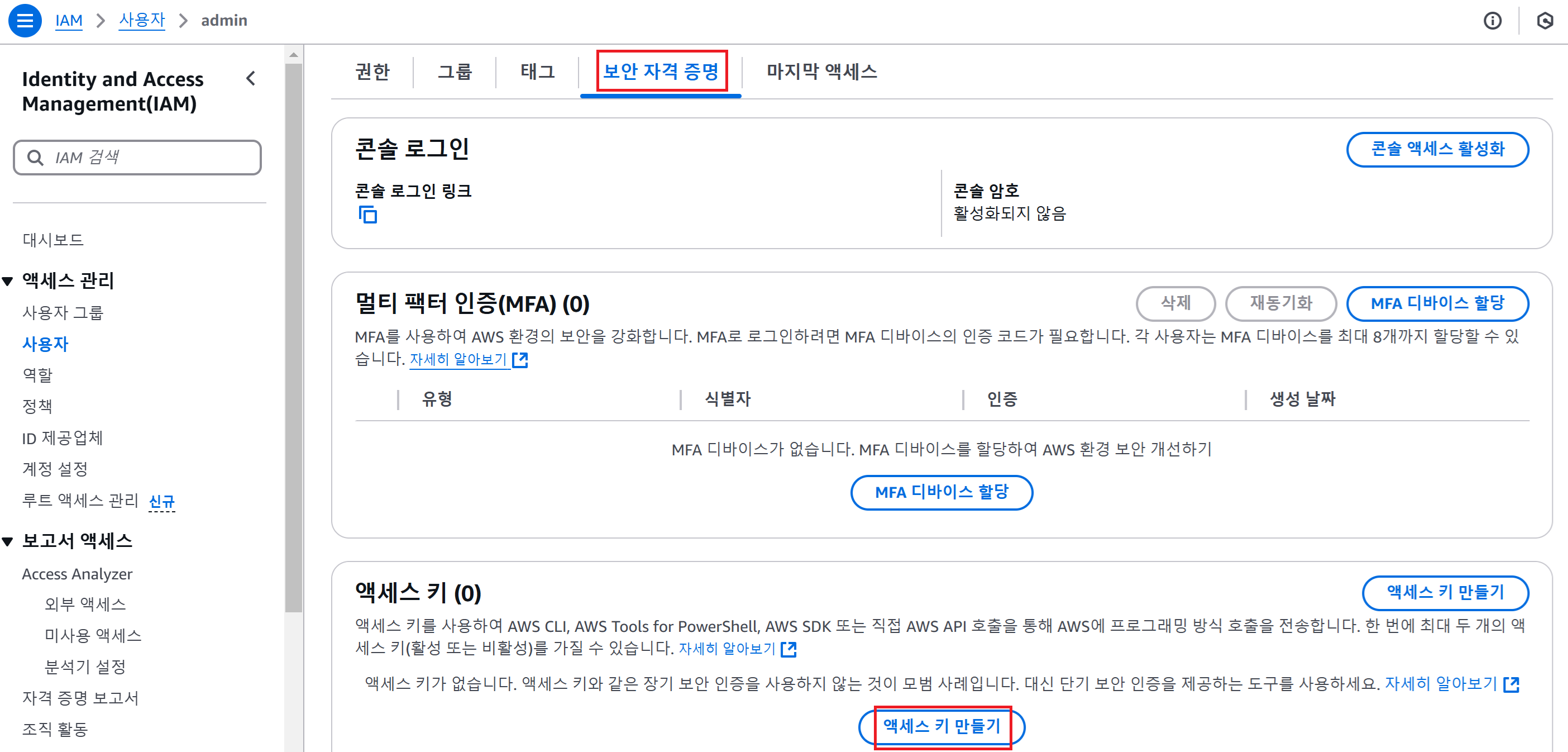 aws_access_key_id = 액세스 키 입력