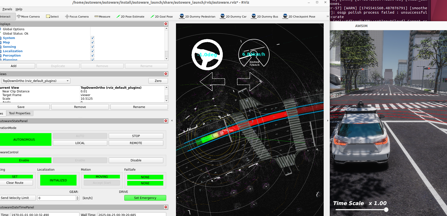 ros2 launch autoware_launch e2e_simulator.launch.xml vehicle_model:=sample_vehicle sensor_model:=awsim_sensor_kit map_path:=/home/autoware/autoware_map/nishishinjuku_autoware_map