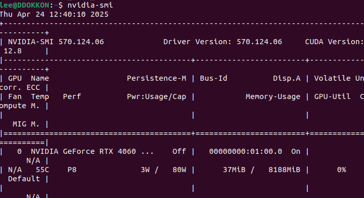 호스트의 그래픽 드라이버, 쿠다 버전은 본인 시스템에 맞는 최신버전을 설치하면 된다.