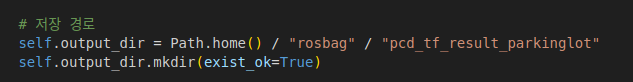 rosbag 실행후 10초 정도뒤에 아래 파이썬 파일 실행하자. (tf정보 충분히 버퍼에 쌓이고 난뒤)
