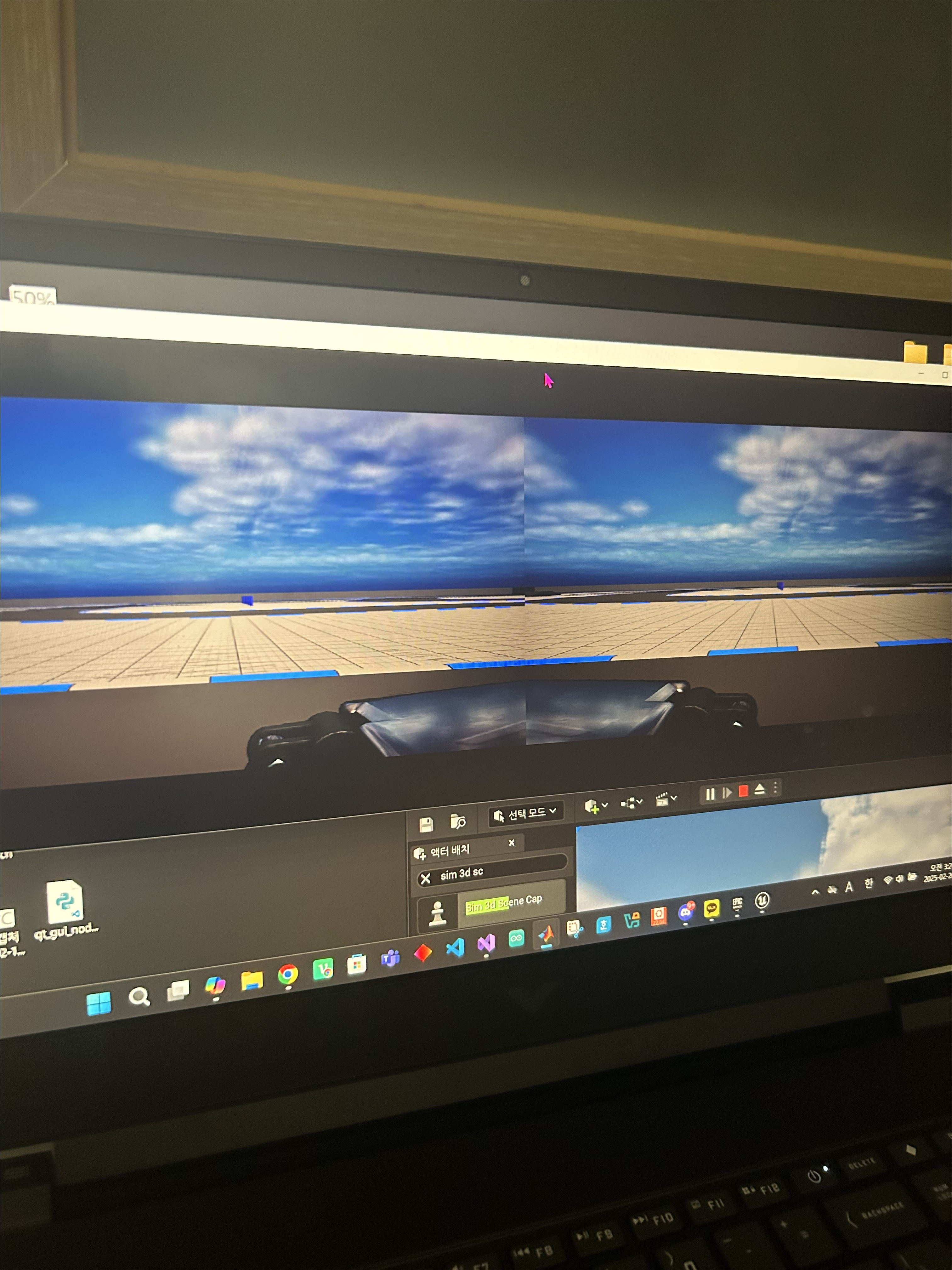 c) Simulation 3D Actor Transform Set으로 좌 우측 카메라의 위치를 조정하고,