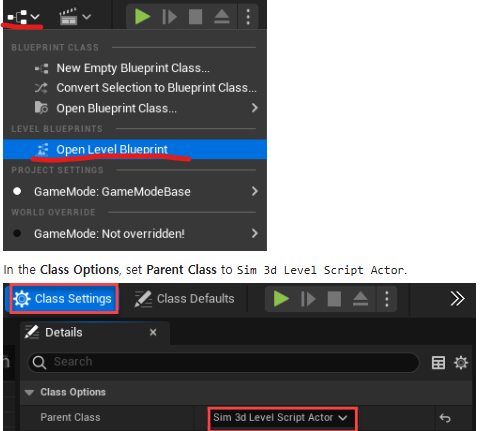 ⚠️Epic Games 런처를 통해 실행한 UE에서는 프로젝트 생성만 해야한다. 수정은 반드시 Simulation 3D Scene Configuation Simulink Block을 통해서 해야한다!
