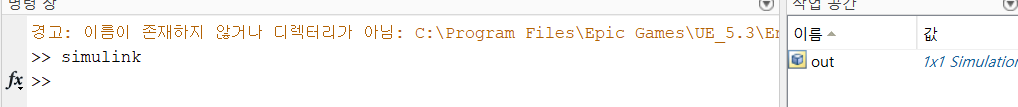 simulink에서 실행버튼, UE에서도 실행버튼 클릭