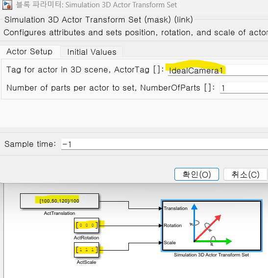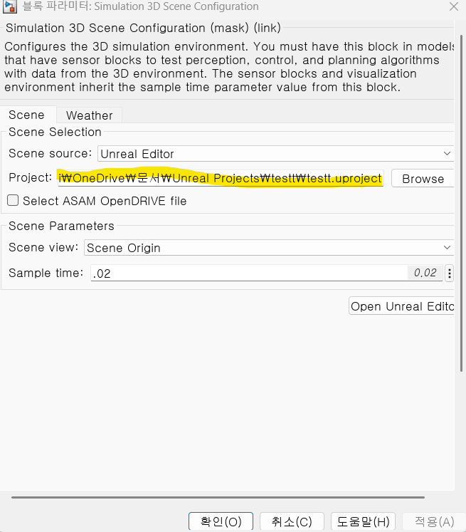 ⚠️Simulation 3D Scene Configuation Simulink Block 의 project 경로를 방금 만들어준 Project의 경로로 해줘야된다!