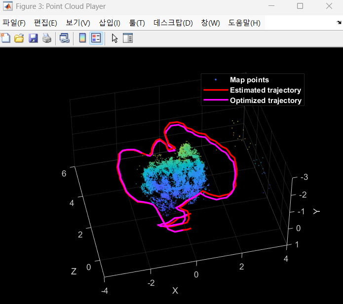 ์คํธ์ฉ์ผ๋ก ์ฒซ ํคํ๋ ์์ 3D SLAM ๊ฒฐ๊ณผ๋ฅผ ์๊ฐํํด๋ณธ๋ค.