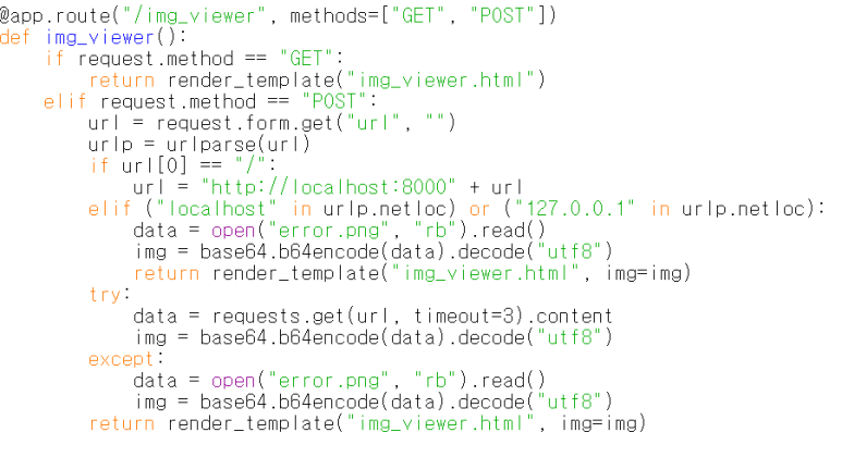자세히 말하면 이 img_viewer는 이용자가 POST로 전달한 url에 HTTP 요청을 보내고, 응답을 반환하는 것이다.