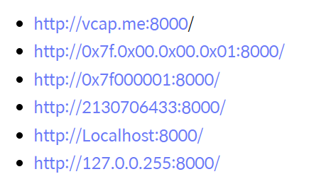 위 주소는 필터링을 우회할 수 있는 localhost URL들이다.