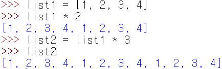 프로그램 수행 결과로 두 리스트가 하나로 되고, 할당연산자를 통하여 list3에 할당하였다. 다음은 곱셈 연산을 해보자.