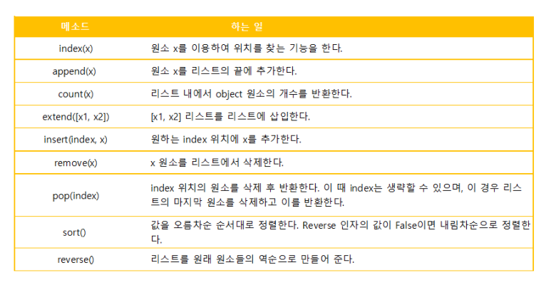 정렬뿐만 아니라 리스트는 다양한 메소드를 제공하여 개발시에 편리하게 이용 가능하다.