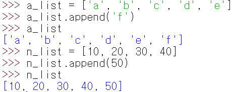리스트 내에 원하는 항목을 추가하려면 append() 메소드를 사용한다. 이는 이미 존재하는 리스트의 끝에 새로운 항목을 삽입하는 기능을 한다. 실습을 해보자.