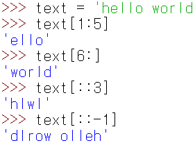 슬라이싱은 리스트 뿐만 아니라 문자열에도 적용 가능하다.