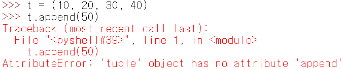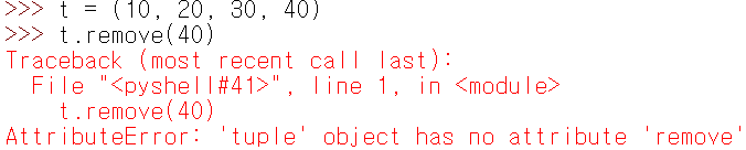 튜플에는 remove() 메소드가 없다. 그래서 오류가 발생한다.