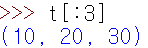 t에는 인자가 10, 20, 30, 40이 있다. 여기서 50은 튜플 t에 없는 인자기 때문에 오류가 발생한다.