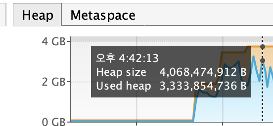 VisualVM을 사용하여 테스트한 결과는 아래와 같다.