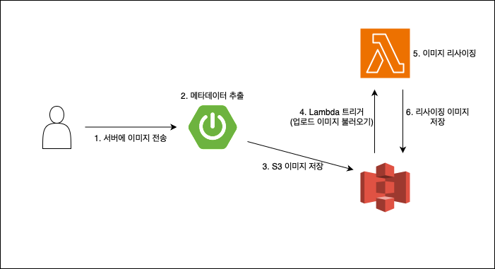 AWS Lambda를 도입함으로써, 이미지 저장 로직은 아래와 같다.