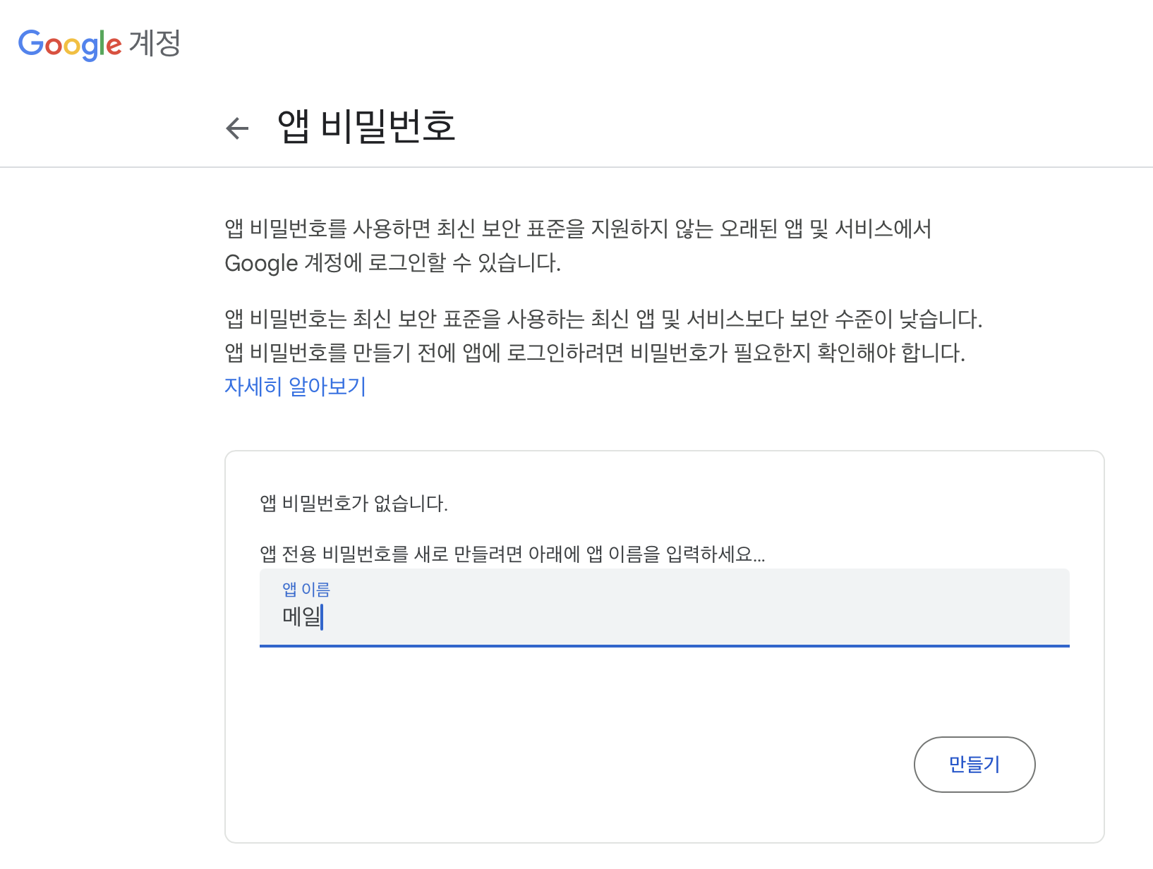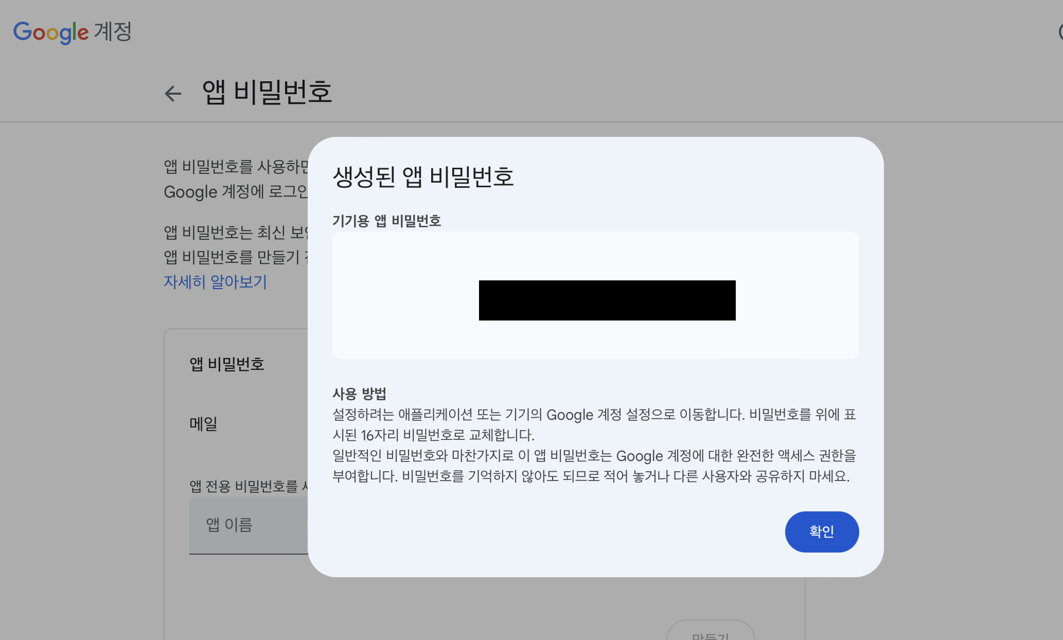 앱 비밀번호 생성