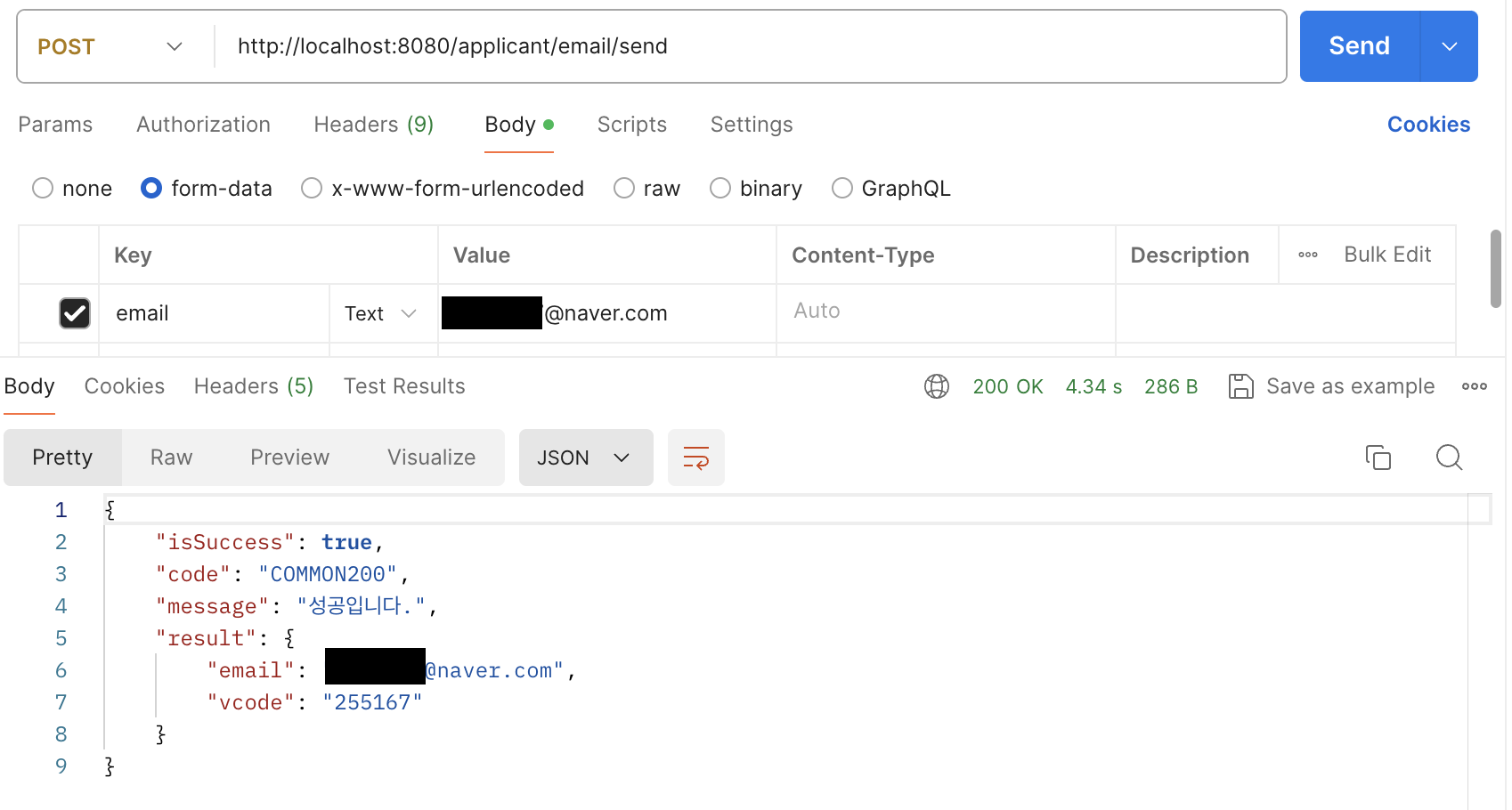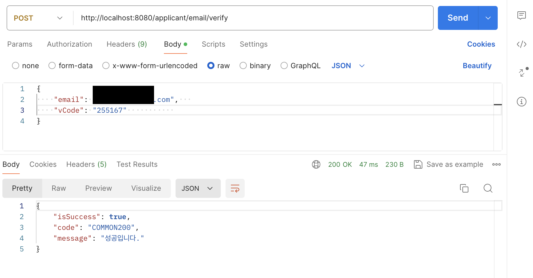 인증코드 검증도 성공 !!