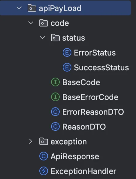 BaseCode, BaseErrorCode : 인터페이스, status에 있는 파일들은 이 메소드를 반드시 override할 것