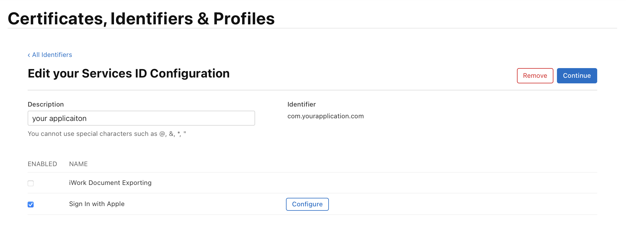 Sign In with Apple에서 Configure를 클릭해준다.
