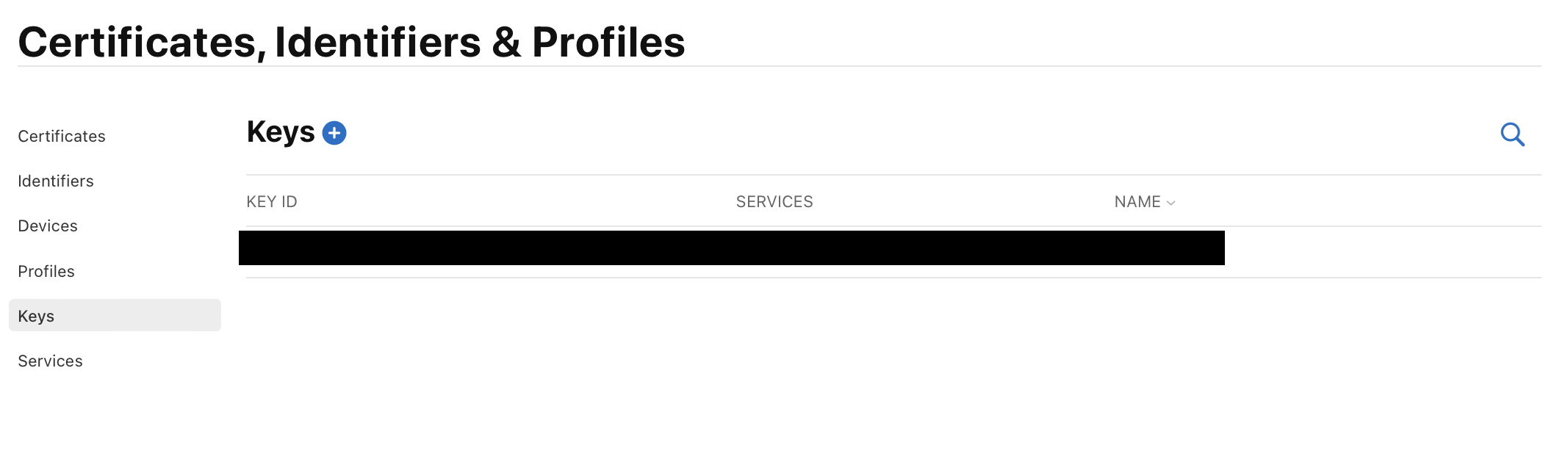 Certificates, Identifiers & Profiles에서 +버튼을 눌러주고