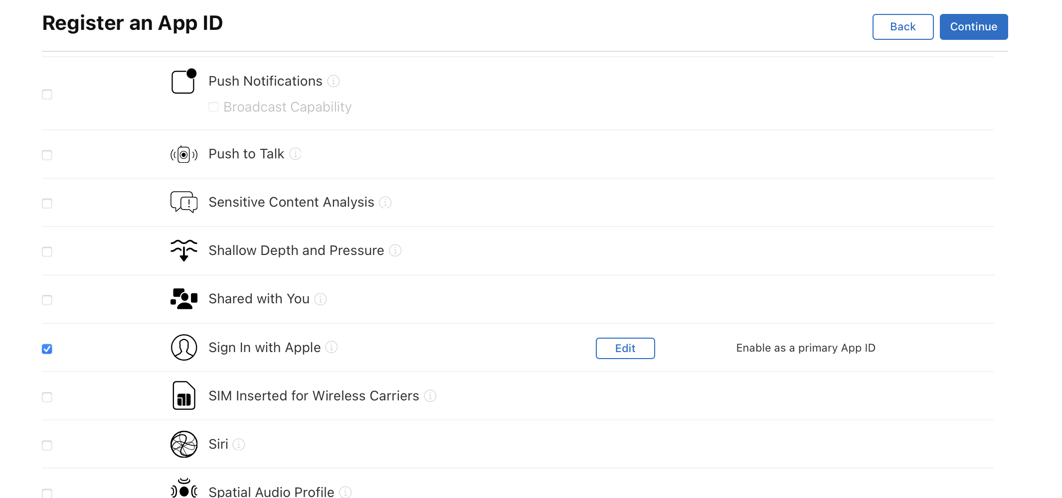 Sign In with Apple을 체크해준후 Edit를 눌러준다.