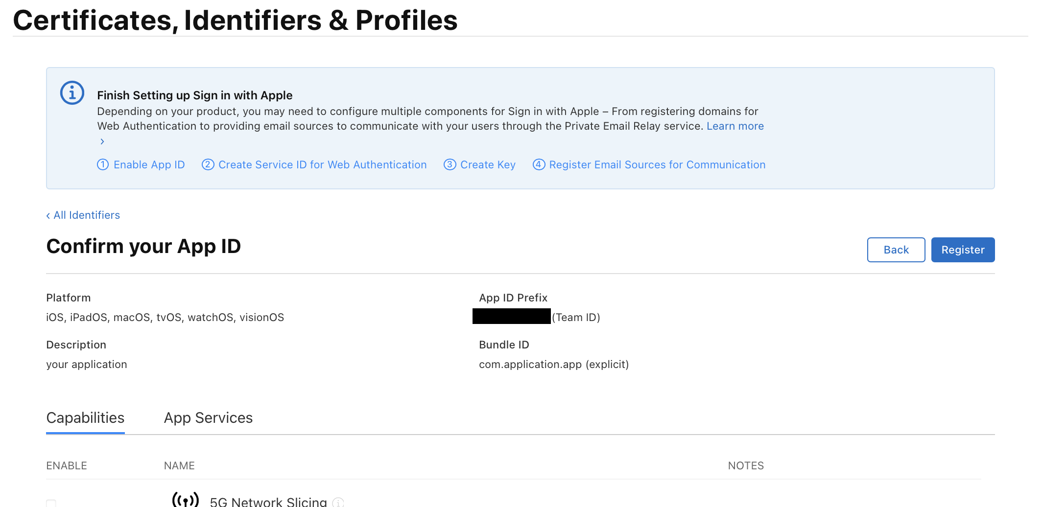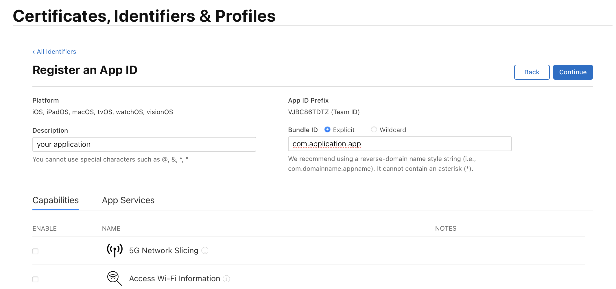 Description이랑 Bundle ID를 작성해준다. Bundle ID는 앱을 구별하는 고유 식별자이다.