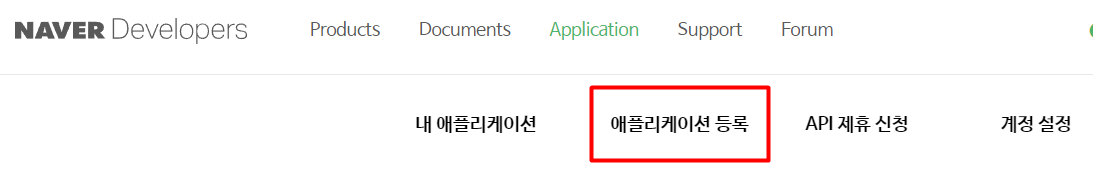 Application > 애플리케이션 등록 : 우선 api를 사용신청해준다.