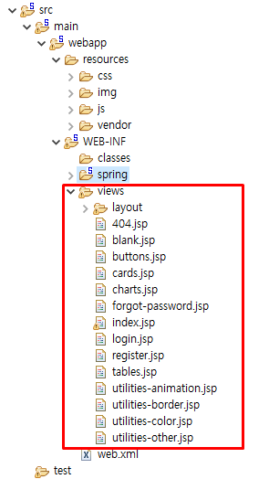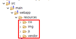css/img/js/vendor 등은 src/main/webapp/resources에 넣어준다.