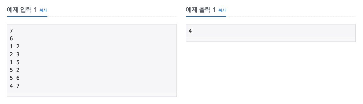 int N, M, cnt=0; // N : 컴퓨터의 수, M : 네트워크 상에서 직접 연결되어 있는 컴퓨터 쌍의 수, cnt : 감염된 컴퓨터의 수