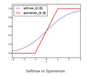 - sparsemax: 중요한 feature는 1, 아닌 것은 0으로 mask를 만들어줌 (softmax보다 희소한 결과값을 만듦)
