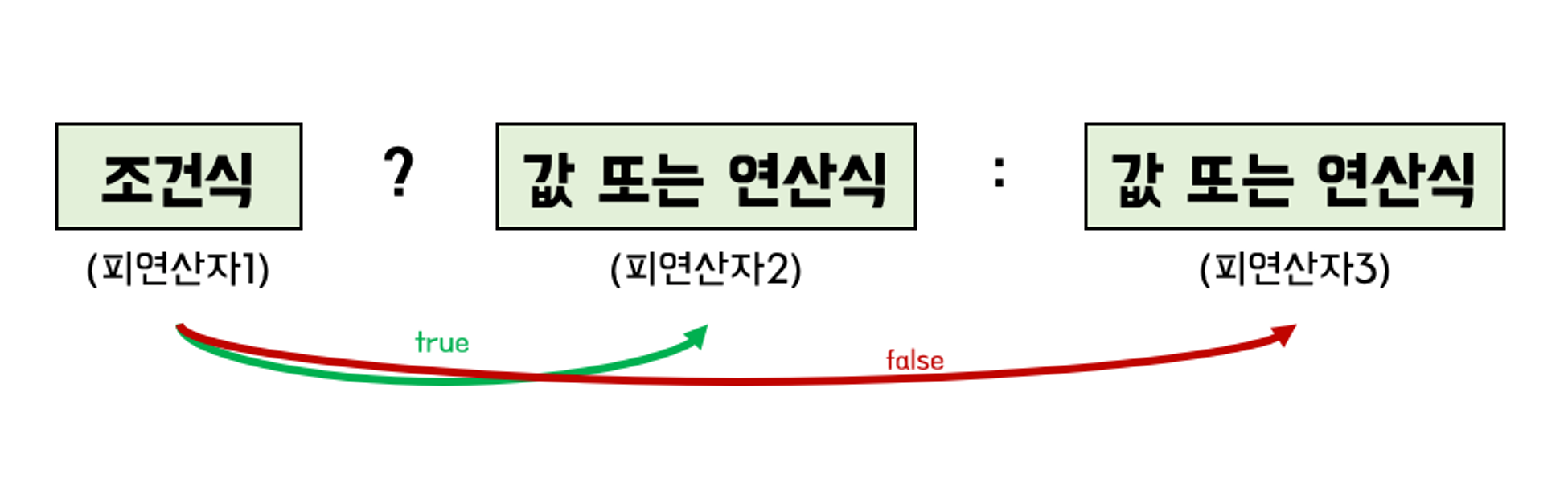 아래 연산식에서 ? 앞의 조건식에 따라 콜론( : ) 앞 뒤의 연산자가 선택되는 조건 연산식 이라고 할 수 있습니다.