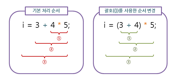 4. 복잡한 연산식에는 괄호()를 사용해서 우선순위를 정해준다.