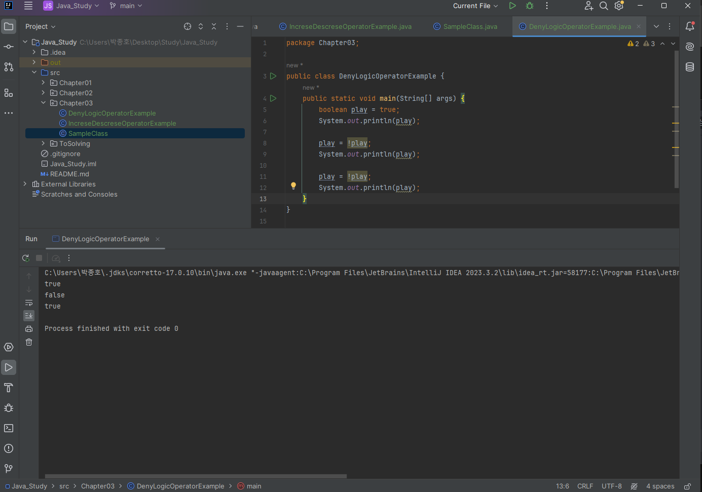 피연산자 중 하나만 true이면 결과는 true 입니다.