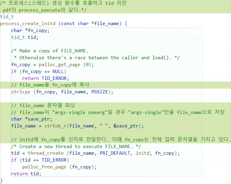 // initd에 fn_copy를 인자로 전달한다. 이때 fn_copy는 전체 입력 문자열을 가지고 있다.