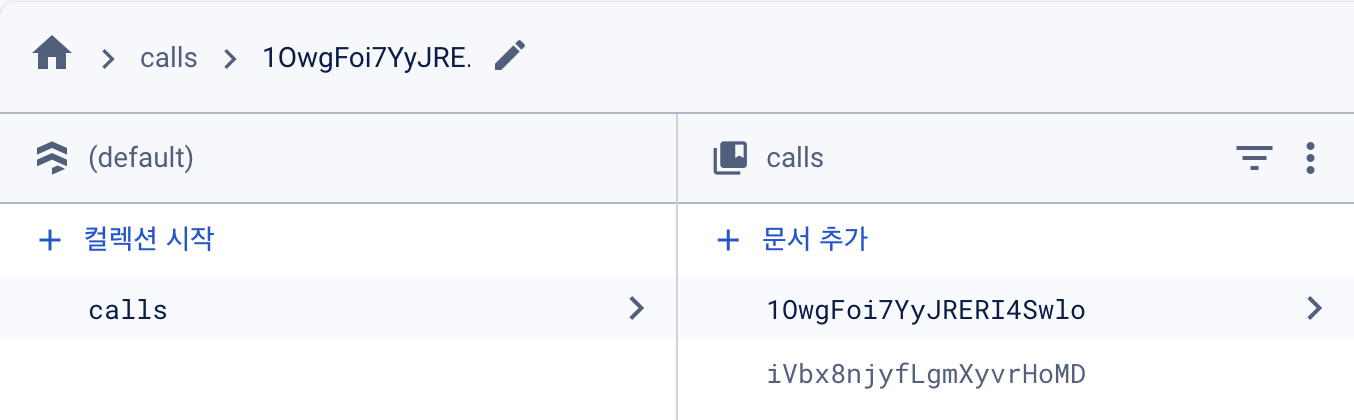순서대로 누르면 아래처럼 calls 컬렉션에 코드가 추가된다.
