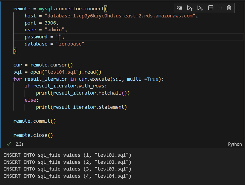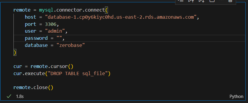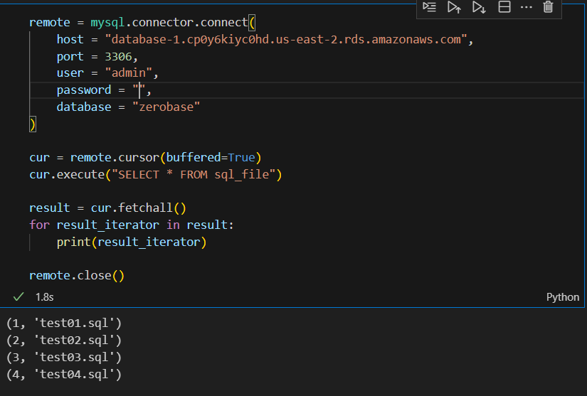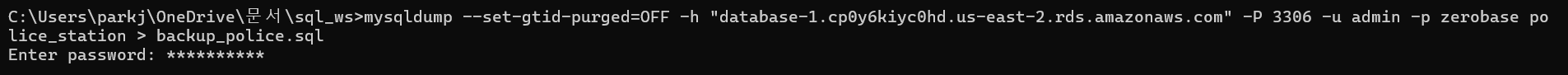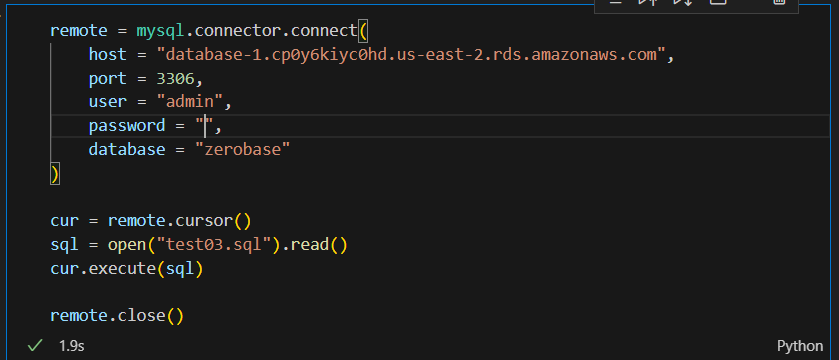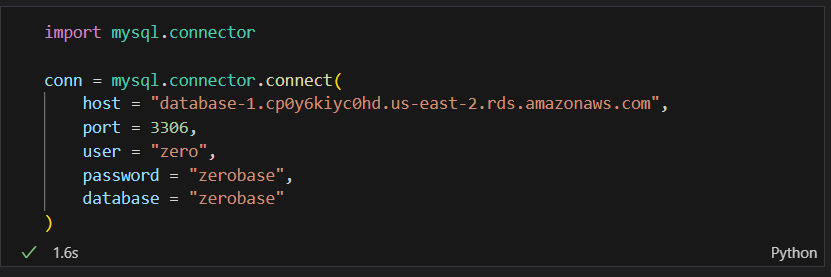 AWS RDS(database-1)의 zerobase 데이터베이스에 연결