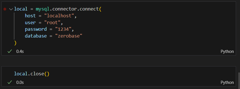 LocalMySQL의 zerobase 데이터베이스에 연결