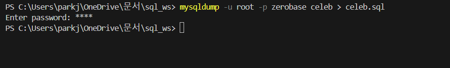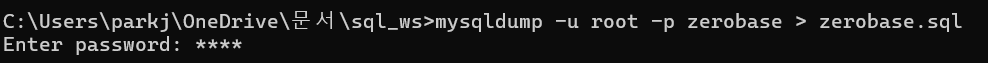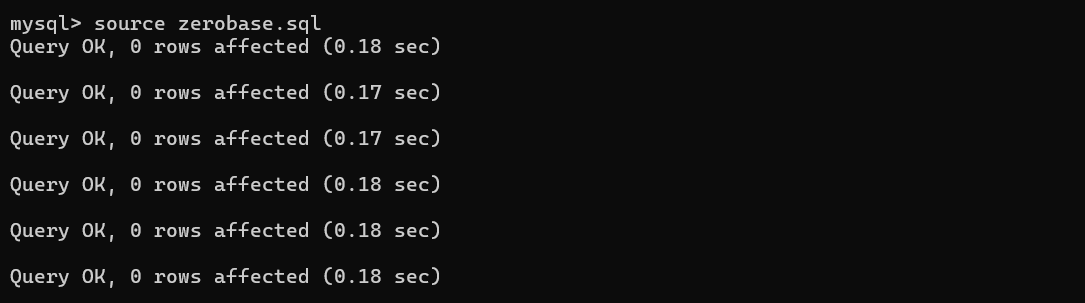 백업해 두었던 zerobase.sql 파일을 실행